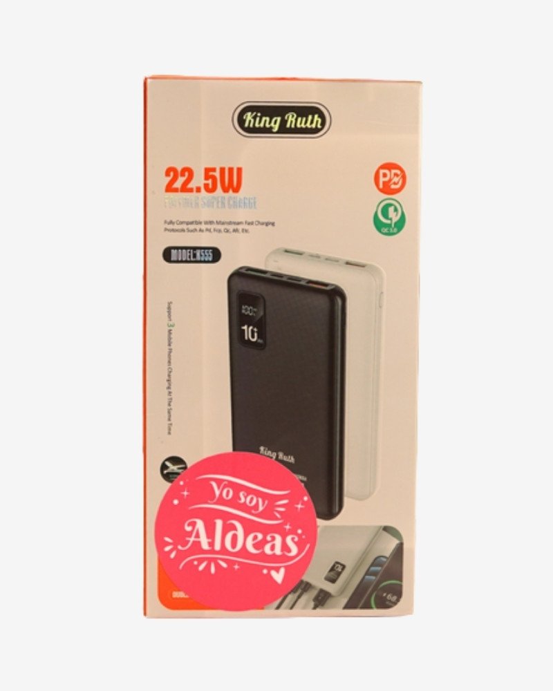 Cargador portátil King Ruth de 22.5W. Recarga tus dispositivos en cualquier lugar de forma rápida y segura. Su diseño compacto es ideal para llevarlo siempre contigo.
