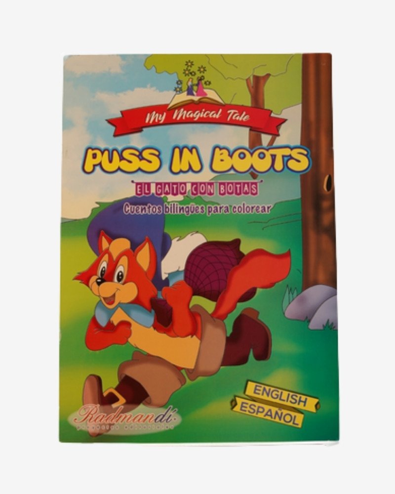 Libro bilingüe (inglés-español) «Puss in Boots / El Gato con Botas» de la colección «Thy Magical Tale» para colorear. Papel de 90-120 g/m². Ideal para aprender idiomas mientras te diviertes.